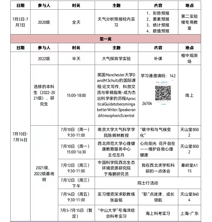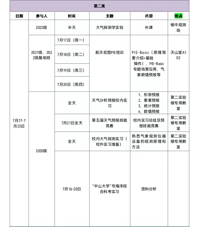 ②大气科公司内综合实习――7月3日至21日。