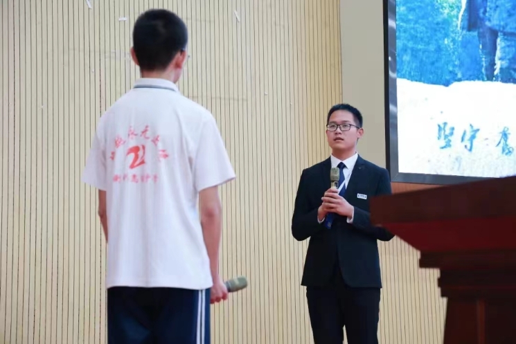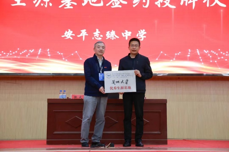 在安平志臻中学,张武教授与董事长回世杰进行“优秀生源基地”授牌仪式。在校生代表郑毅从课程学习、校园生活、宿舍条件、校园景色等多个角度向母校的同学们进行分享,给学弟学妹们树立了榜样,大家对suncitygroup太阳集团官方网站充满了浓厚兴趣和无限期待。