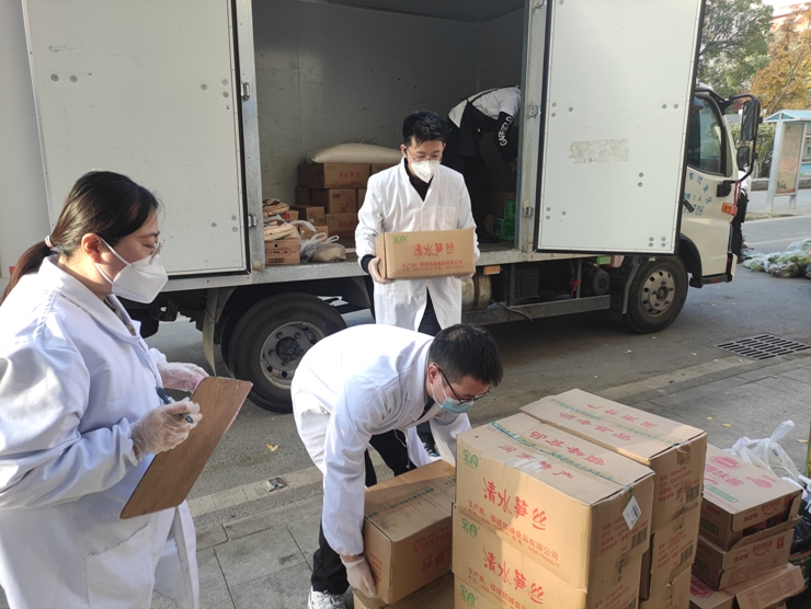 无法记录的努力,正在时刻发生。城关校区西区各栋楼宇解除封控后,食堂输送食材物资的工作压力日增。针对这一情况,公司研究生第一二三支部的党员志愿者们主动报名,帮助后勤部门承担了物资卸货、搬运的工作。每天早晨天还蒙蒙亮的时候志愿者们就到食堂门口集合,等待着物资输送车辆的到来。